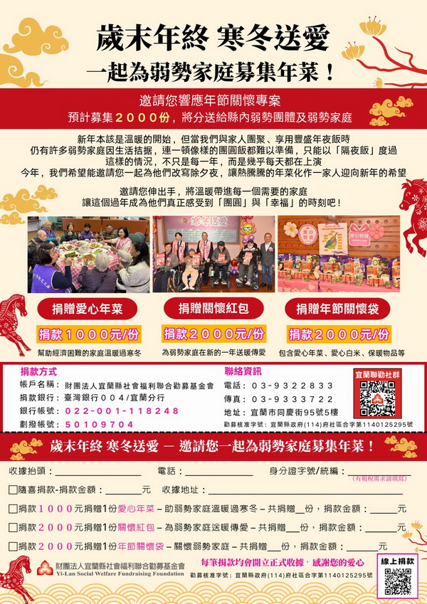 影音/義剪+送年菜+發慰問金 宜蘭聯勸攜手弘德愛心協會溫暖弱勢家庭