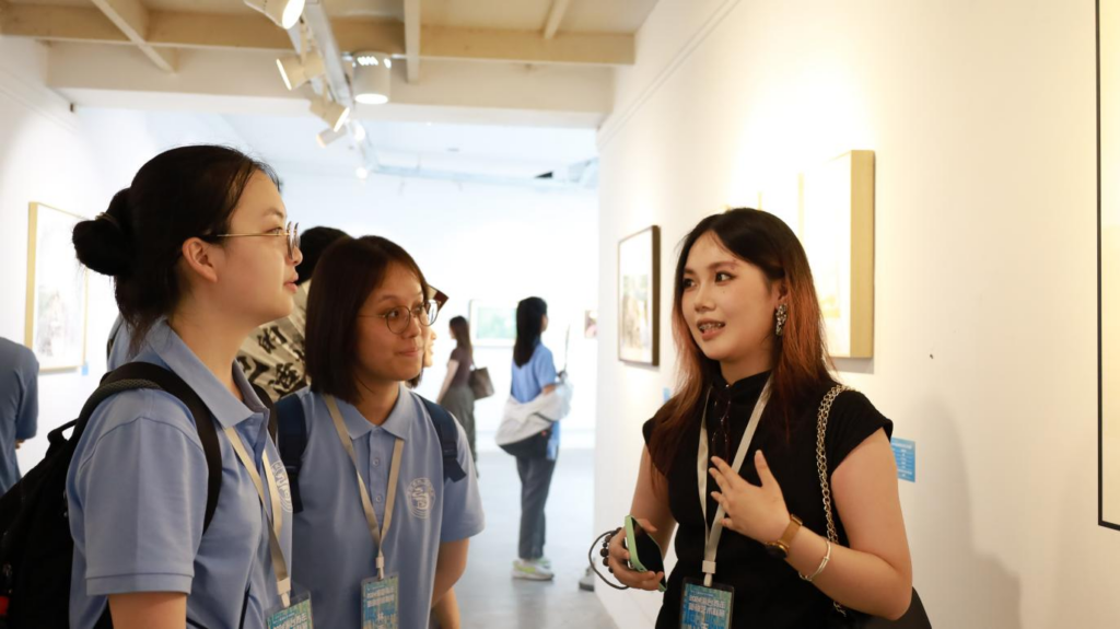 值得一提的是,活動現場,兩岸各大高校的參展學生以「筆」為媒,以「畫」會友,互相交流彼此的畫作,暢談創作構思。