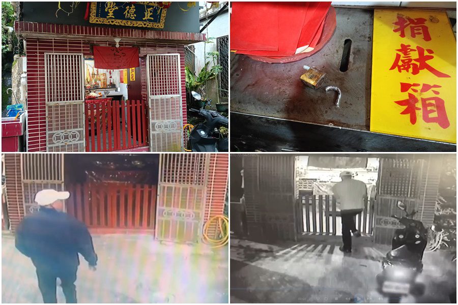 從廟外監視器錄下的畫面可以清楚看見夏男分別在大年初一晚間、初二上午,先在廟前張望,趁著四下無人之際,打開柵門入內行竊。廟方發現捐獻箱的鎖頭遭人破壞,箱內的錢已被偷走,隨即向蘇澳分局南方澳派出所報案。