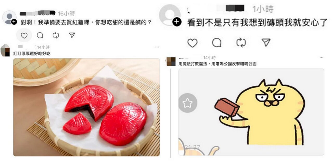 網友一求救,留言區彷彿成為大型求生教學現場,不少網友分享創意回覆紅包心理戰策略,有人笑稱「用魔法打敗魔法,用喵嗚公園反擊喵嗚公園」、也有人幽默回應「紅紅厚厚還好吃好吃」、「我準備去買紅龜粿,你想吃甜的還是鹹的?」更有網友表示:「看到不是只有我想到磚頭,我就安心了。」各種神回覆引發粉絲熱烈討論,紅包話題也變得輕鬆有趣,也讓貼圖意外成爲社群討論熱點。