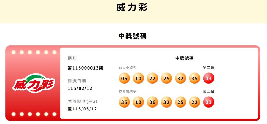 ※威力彩獎號、派彩訊息依台彩公告為主。