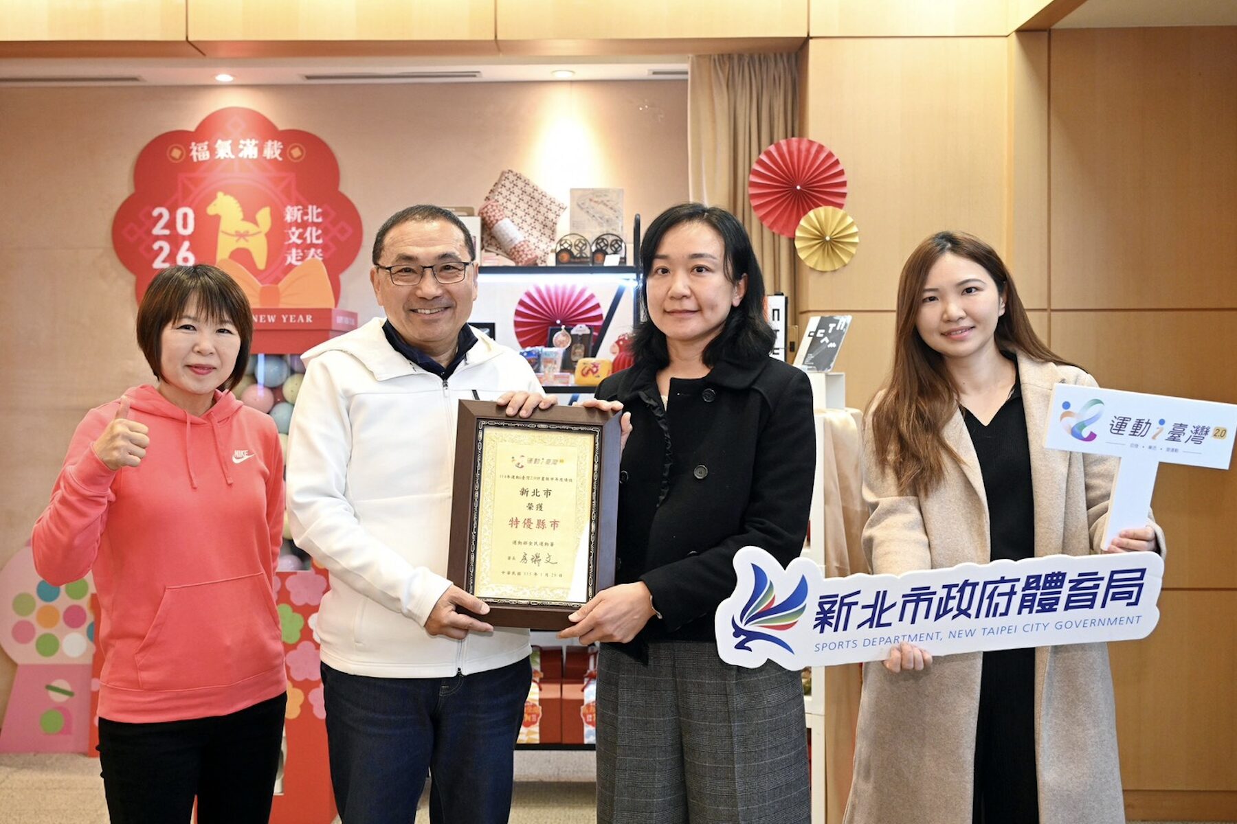 新北市積極推動全民運動,成果再獲肯定。在運動部全民運動署辦理的「114年運動i臺灣2.0計畫」評核中,新北市榮獲「特優縣市」殊榮,展現長期深耕全民運動、打造健康城市的亮眼成效。(11)日於市政會議中,新北市政府體育局特別獻上這份榮耀,與市府團隊及全體市民共享,象徵新北持續朝向運動友善城市邁進的重要里程碑。