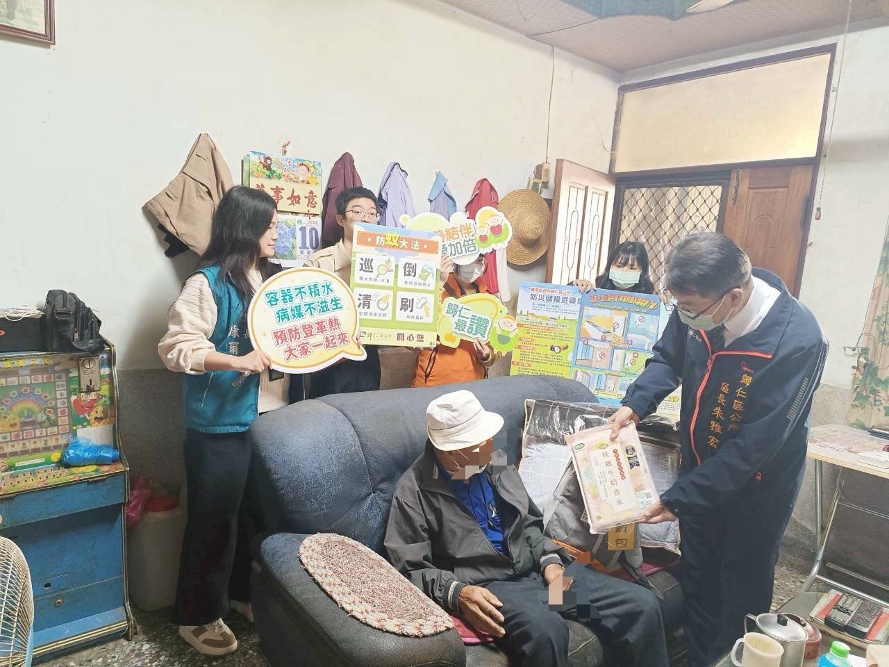 記者郭忠淵台南報導 歸仁區公所(10)日結合區內行善團,啟動年節前夕關懷獨居長者,由歸仁區區長朱雅宏代表黃偉哲市長前往探訪,送上芝麻糊、燕麥等民生物資外,並致贈長輩保暖物品,更針對列冊的經濟弱勢獨居長者發送緊急避難包,特別叮囑長輩們毛帽一定要戴好、隨時補充溫開水,務必要做足保暖工作