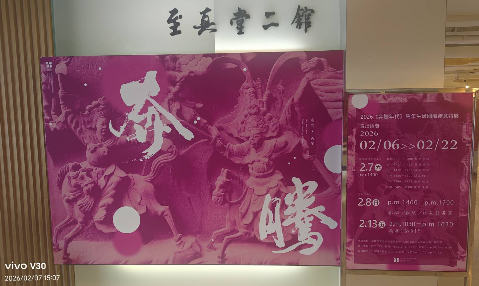 2026丙午馬年正逢春節期間,高雄文化設計發展協會(KCDD)於高雄市文化中心至真堂一、二館推出「2026『奔騰年代』生肖國際創意展」,以「馬」為主題貫穿展覽、活動與教學三大軸線,整合設計、藝術、工藝與生活美學,讓傳統生肖文化注入當代創意新意。展覽自2月6日至22日展出,透過圖像設計競賽與創作展出、DIY課程、春聯與紅包袋書寫等活動,鼓勵觀眾從多面向感受馬年文化意義,體現馬的純陽象徵、躍動精神與自強不息的生命力。本展同時由高雄市政府文化局與青年局支持,旨在以設計表現傳統生肖文化的新生命。
