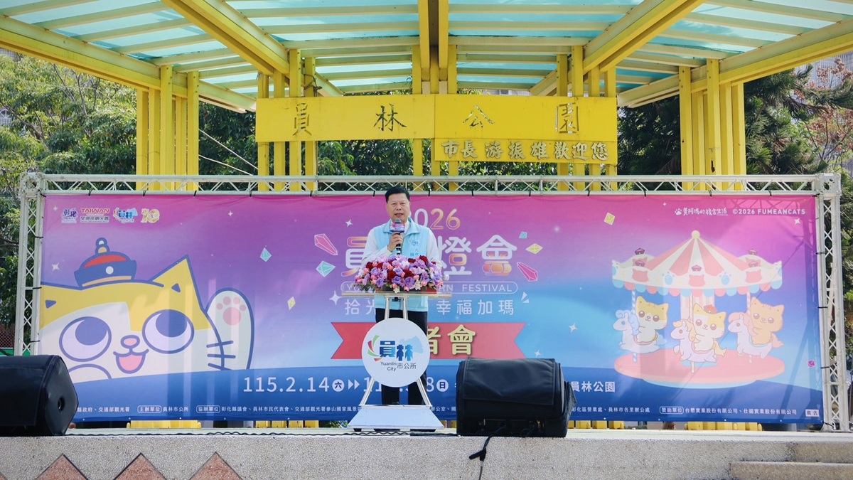 員林市公所今(31)日在員林公園舉辦「2026拾光員林 幸福加瑪」員林燈會記者會,由員林市代理市長賴致富、彰化縣政府城市暨觀光發展處處長王瑩琦、彰化縣政府機要祕書張建豐、秘書游筑凱、賴沛然,參山國家風景區管理處副處長廖錫標、員林火車站站長李瑞德、縣議員劉惠娟、張錦昆、凃俊任、曹嘉豪,與員林市民代表會主席張國良暨各代表與里長,台懋實業股份有限公司經理楊宗翰、員林福寧宮主委林猷鐘等嘉賓,共同宣布元宵燈會的開始,2026員林燈會暨元宵節活動將於2月14日晚間在員林公園浪漫點燈,展期到3月8日止。