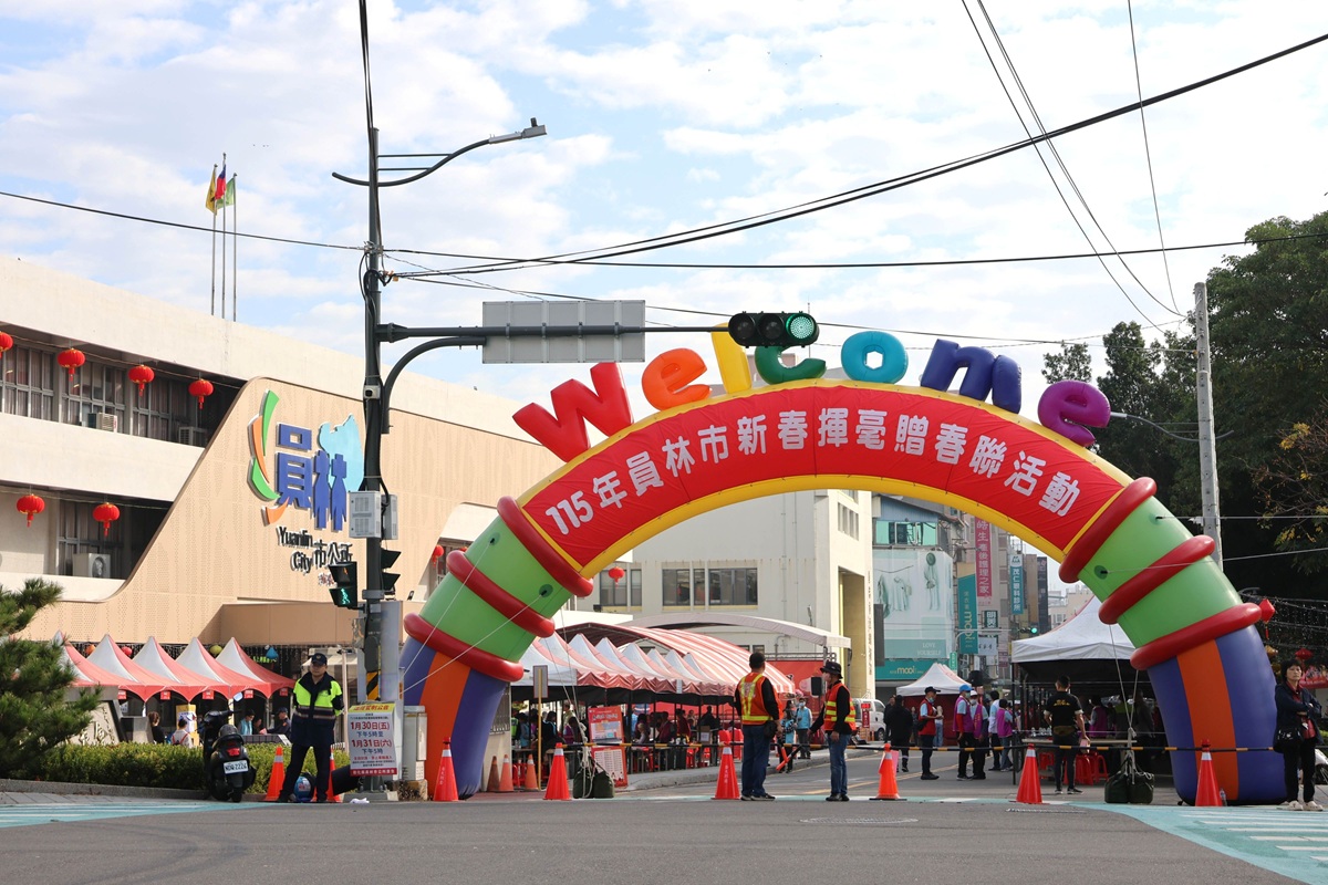 員林市公所今日在公所廣場前舉辦「馬耀新程・幸福飛揚」新春揮毫贈春聯活動,由員林市代理市長賴致富、立委謝衣鳳、縣政府秘書游筑凱、賴沛然,縣議員張錦昆、曹嘉豪,與員林市民代表會主席張國良暨各代表與里長,與員林市各國中、小校長與教師,以及救國團員林市團委會林文進會長等嘉賓,在歲末迎新的活動揭開序幕。
