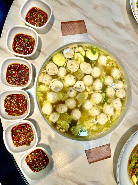 圖說:臺灣美食-新竹貢丸湯。寶島阿嬤餐廳特加辣椒蘸料,融入當地人喜辣特色 (圖/旺北金津提供)