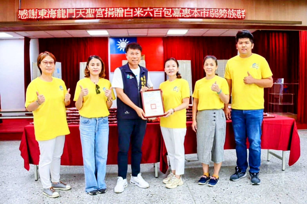 關懷弱勢是陳銘風市長重要的施政方向之一,東海龍門天聖宮陳柔嫻宮主表示,天聖宮每月二次辦理『一日蔬食』結緣便當發放至今已發出逾一萬五千個健康蔬食便當,每年持續辦理寒冬送暖、義診、義剪、弱勢探訪、賑濟捐助、開辦讀經班…等多項社教公益志業。2023年成立『中華民國天上聖母東海媽祖慈善協會』,與臺東市里長聯誼會及各個社區發展協會持續推動弱勢家庭探訪及照護、發放清寒獎學金,並積極支持衛生福利部社會及家庭署、臺東縣政府、社團法人台灣安心家庭關懷協會,擔綱成為新興社區照顧關懷據點。這次捐贈白米,不僅代表著宮廟對在地的關懷,也是對市府團隊的支持。