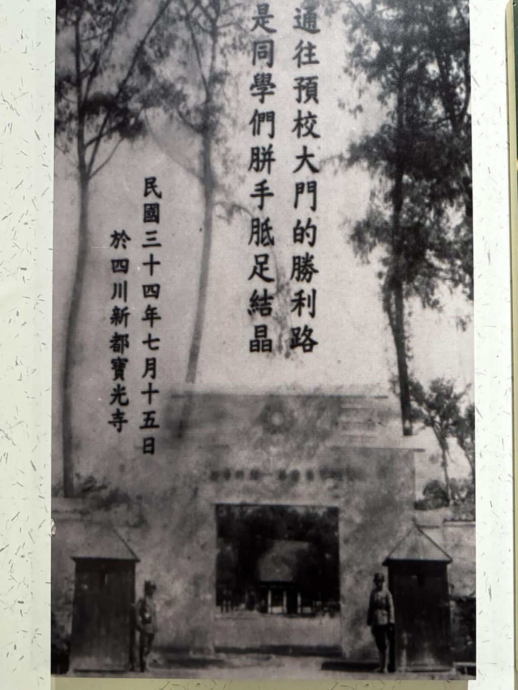 明年2024年6月是黃埔軍校建校100年的重要歷史時刻。1937年抗日戰爭爆發,黃埔軍校南京分校西遷內地,選擇離陪都重慶最近的成都做為新校址,成都分校成立後,繼續招收各地年輕人入校,到現在都還保留的校址包含北教場、寶光寺、杜甫草堂等做為預備培訓學校、校舍等組成黃埔分校,當時住訓機構的全稱先後為「陸軍軍官第一預備學校」、「陸軍軍官學校預備班」及「陸軍軍官學校22期第三總隊」等。白崇禧將軍在新都大操場閱兵後把「陸軍軍官第一預備學校」改成「陸軍軍官學校預備班」,由徐幼常(1903~1984)少將擔任班主任,主要學習軍事管理、基本教練和高中三年課程。黃埔第23期時,寶光寺為該期二總隊駐地,位於新都區的寶光寺地處歷史文化名城,寺內有許多黃埔珍貴歷史文物、照片、記載至今保存良好,預校營房雖然不復存在,但大遍楠木樹林保存完好。