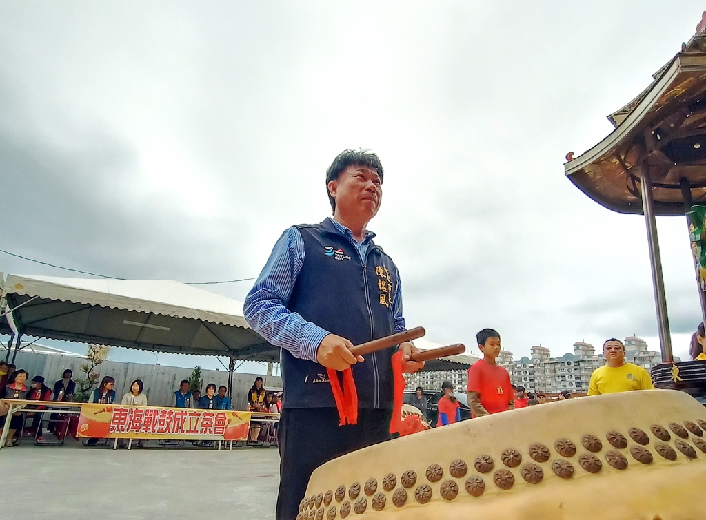 (圖四)▲台東市長陳銘風為『東海戰鼓』開鼓。(圖/東海龍門天聖宮 提供)
