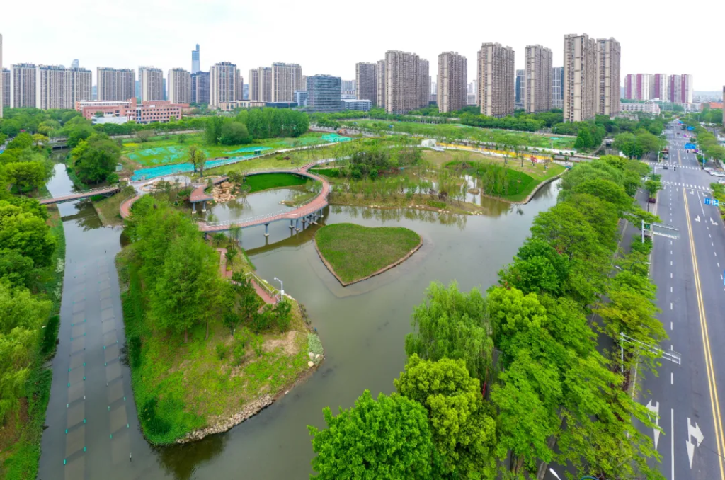 “愛情灣”生態公園位於河西南部的建鄴區雙閘街道,面積約1.5萬平方米,西側與南側分別與文遠河、螺塘河相鄰。